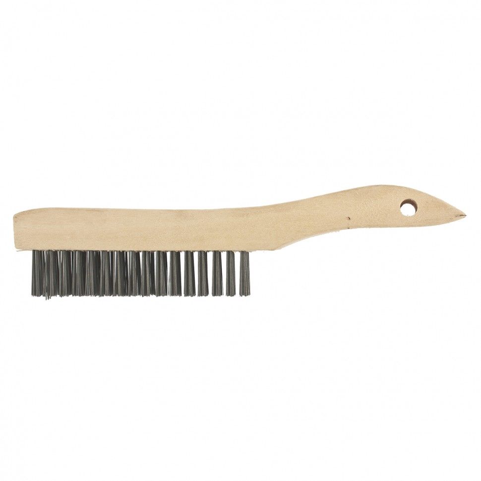 Щетка зачистная пятирядная, закаленная прямая проволока с деревянной ручкой Сибртех