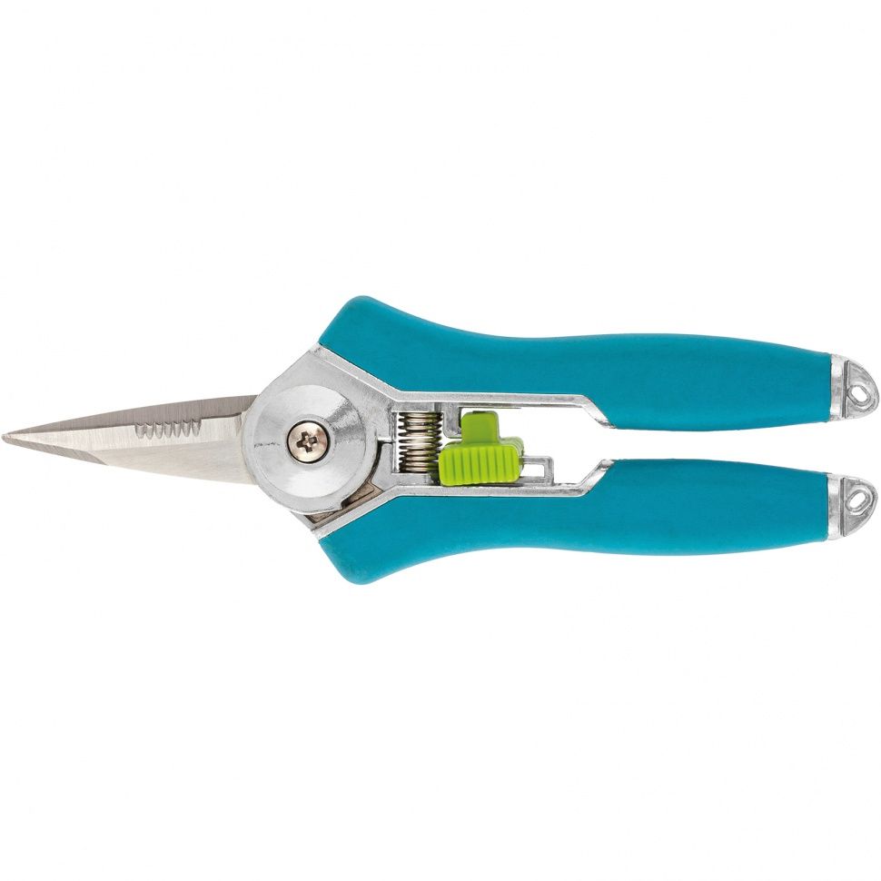 Цветочный секатор Palisad LUXE 60500 длиной 150 мм, с металлическими обрезиненными рукоятками, предназначен для срезания молодых побегов и стеблей диаметром до 10 мм. Также используется для оформления крон бонсай и топиариев, полезен в быту — секатором можно резать бумагу, картон, ткань, подвязочный материал. Крепежный винт позволяет регулировать плотность примыкания лезвий. Инструмент пригодится для ухода за цветами и другими растениями на дачном участке. ПреимуществаВысокий ресурс — лезвия прошли индукционную закалку, кромки заточены на специальном оборудовании. Устойчивость к разрушению — лезвия изготовлены из нержавеющей стали, рабочие поверхности покрыты маслом для дополнительной защиты от ржавчины. Надежность — литые рукоятки из нержавеющей стали выдерживают повышенные нагрузки на излом и изгиб. Комфортное использование — обрезиненные рукоятки не выскальзывают из ладони. Безопасное хранение и транспортировка — фиксатор лезвий препятствует их случайному раскрытию.