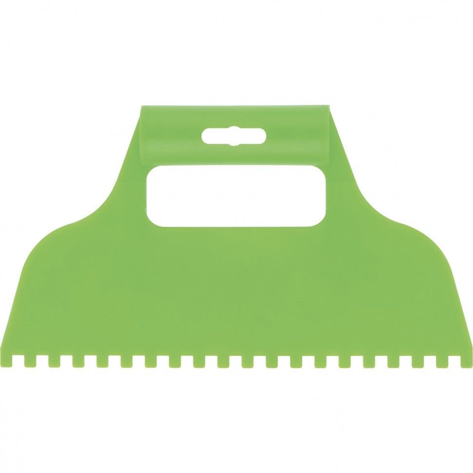 Пластмассовый шпатель для клея Сибртех 86015, зубчатый (квадратные зубья 6 х 6 мм), рассчитан на нанесение клеевых составов и их последующее выравнивание. Зубчатая рабочая часть позволяет равномерно наносить смесь для надежного соединения с плиткой и расходовать ее экономно. ПреимуществаЭргономичная рукоятка способствует удобному захвату инструмента и комфортной работе. В рукоятке предусмотрено отверстие для подвесного хранения шпателя. Небольшой вес инструмента предотвращает появление усталости в руках во время работы.