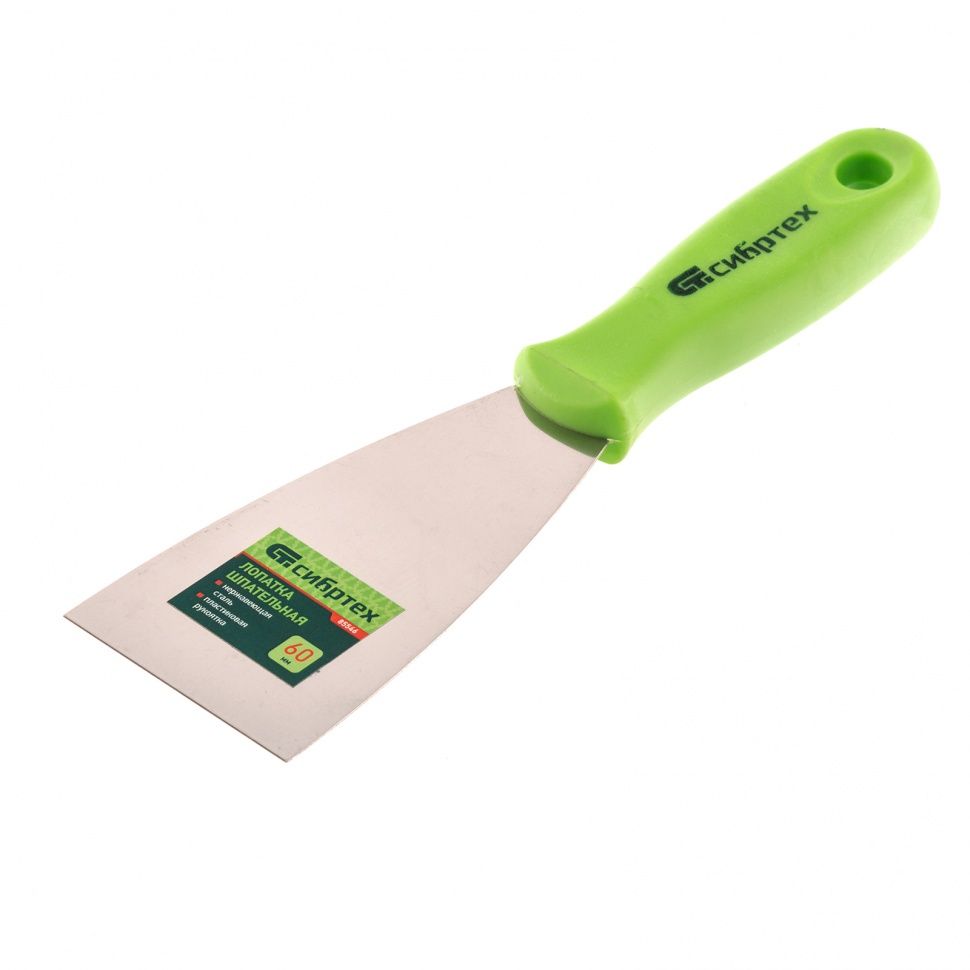 Шпательная лопатка из нержавеющей стали, 60 мм, пластмассовая ручка // Сибртех