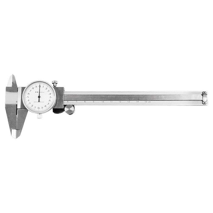 Стрелочный штангенциркуль Matrix 31601 длиной 150 мм — измерительный инструмент для определения внешних и внутренних размеров деталей. Круговая шкала со стрелочной индикацией упрощает считывание показаний, что позволяет сократить время измерения. Штангенциркуль обеспечивает точные результаты — цена деления круговой шкалы 0,02 мм, погрешность составляет ±0,02 мм при величине измерения до 100 мм, и ±0,03 мм при величине измерения более 100 мм. Инструмент пригодится в строительстве, на производстве, в ремонтной мастерской, а также дома или в гараже. ПреимуществаФункциональность — благодаря глубиномеру штангенциркуль можно использовать для измерения глубин различных отверстий. Прочность и долговечность — штангенциркуль изготовлен из инструментальной нержавеющей стали. Надежная упаковка — плотно закрывающийся пластмассовый футляр с мягкой поролоновой подкладкой защищает инструмент во время хранения или транспортировки.