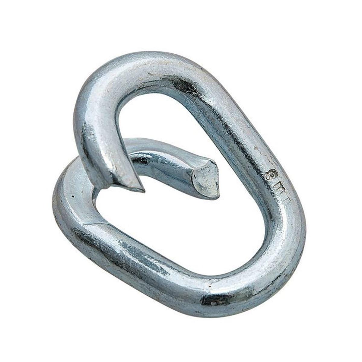 Соединитель цепей (ремонтное звено цепи) обеспечивает быстрое и неразъемное соединение любых видов цепей. Может применяться как для присоединения звеньев, так и для их ремонта. Представляет собой металлическую петлю, по форме напоминающую звено цепи. После присоединения его необходимо заварить при помощи электросварки. Размеры соединителей определяются диаметром поперечного сечения прутка. Изготовлен из стали класса 2. Не для подъема.