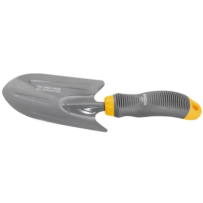 Широкий посадочный совок Palisad STANDARD 62651 размером 82 х 250 мм, стальной, с пластиковой рукояткой, позволяет аккуратно сажать и пересаживать рассаду и взрослые растения. Общая длина инструмента составляет 250 мм, что удобно для работы в ограниченном пространстве. Полотно шириной 85 мм оптимально для выкапывания широких лунок. Совок пригодится владельцам дачных участков. ПреимуществаПрочность и долговечность — полотно изготовлено из среднеуглеродистой стали, порошковое покрытие защищает его от образования коррозии. Удобная эксплуатация — заостренное полотно легко проникает в землю. Надежный хват — рифленая пластиковая рукоятка не выскальзывает из руки. Длительная работа без ощущения усталости — инструмент весит всего 72 г. Возможность подвесного хранения — в рукоятке имеется специальное отверстие.
