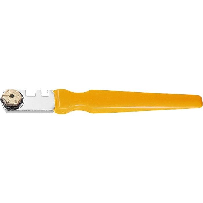 Шестироликовый стеклорез Sparta 872205 с пластмассовой рукояткой служит для резки стекла толщиной до 6 мм и подходит для бытового использования. С его помощью можно изготовить столешницу, полочку, заменить стекло в аквариуме или двери. Блок с 6 роликами позволяет быстро установить новый режущий элемент взамен изношенного — достаточно ослабить винт и повернуть головку. На головке имеются пазы шириной 4 и 5 мм для отламывания кромки стекла, увеличивающие функциональность стеклореза. ПреимуществаИзносостойкость — ролики из твердого сплава YG6 долго сохраняют режущую способность. Надежность — благодаря рукоятке из ударопрочной пластмассы и металлической головке конструкция устойчива к слому. Комфортная работа без лишних усилий — рабочий элемент легко движется по поверхности стекла. Эргономичность — пластиковая рукоятка удобно ложится в руку.