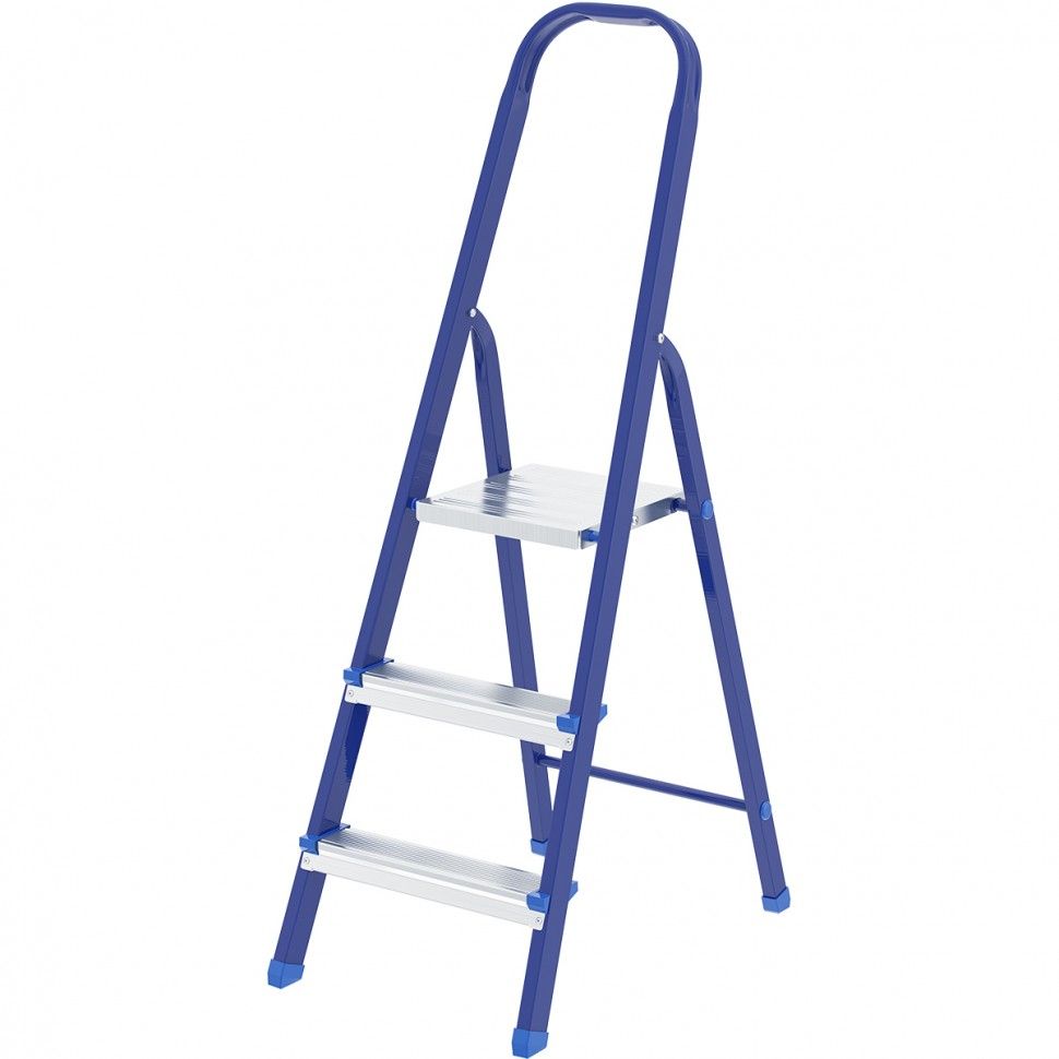 Стремянка стальная Сибртех 97843 с 3 ступенями облегчает выполнение ремонтных, отделочных, а также различных бытовых работ на высоте, превышающей человеческий рост. Площадка находится на высоте 58,5 см от опорной поверхности, рабочая высота стремянки составляет 258,5 см (при среднем росте пользователя 170 см). Высокая дуга безопасности обеспечивает удобную эксплуатацию. Стремянка пригодится дома и на даче. Для обеспечения устойчивости лестницу устанавливают на ровную поверхность, использование электроинструмента во время работы не допускается. ПреимуществаПовышенная прочность — рама и ступеньки изготовлены из стали и выдерживают нагрузку до 150 кг. Надежная фиксация в разложенном положении — рабочая площадка имеет специальные зацепы. Защита от коррозии — стальной профиль рамы покрыт порошковой эмалью. Безопасность пользователя — широкие профилированные ступени имеют рифленую поверхность, их углы защищены специальными накладками для защиты от порезов и царапин. Защита напольного покрытия — ножки с пластиковыми наконечниками не скользят и не оставляют царапины на опорной поверхности. Удобное хранение — размеры стремянки в сложенном состоянии составляют 1310 х 400 х 105 мм. Внешний вид товара может незначительно отличаться от указанного на изображении, что не влечет изменения его качества.