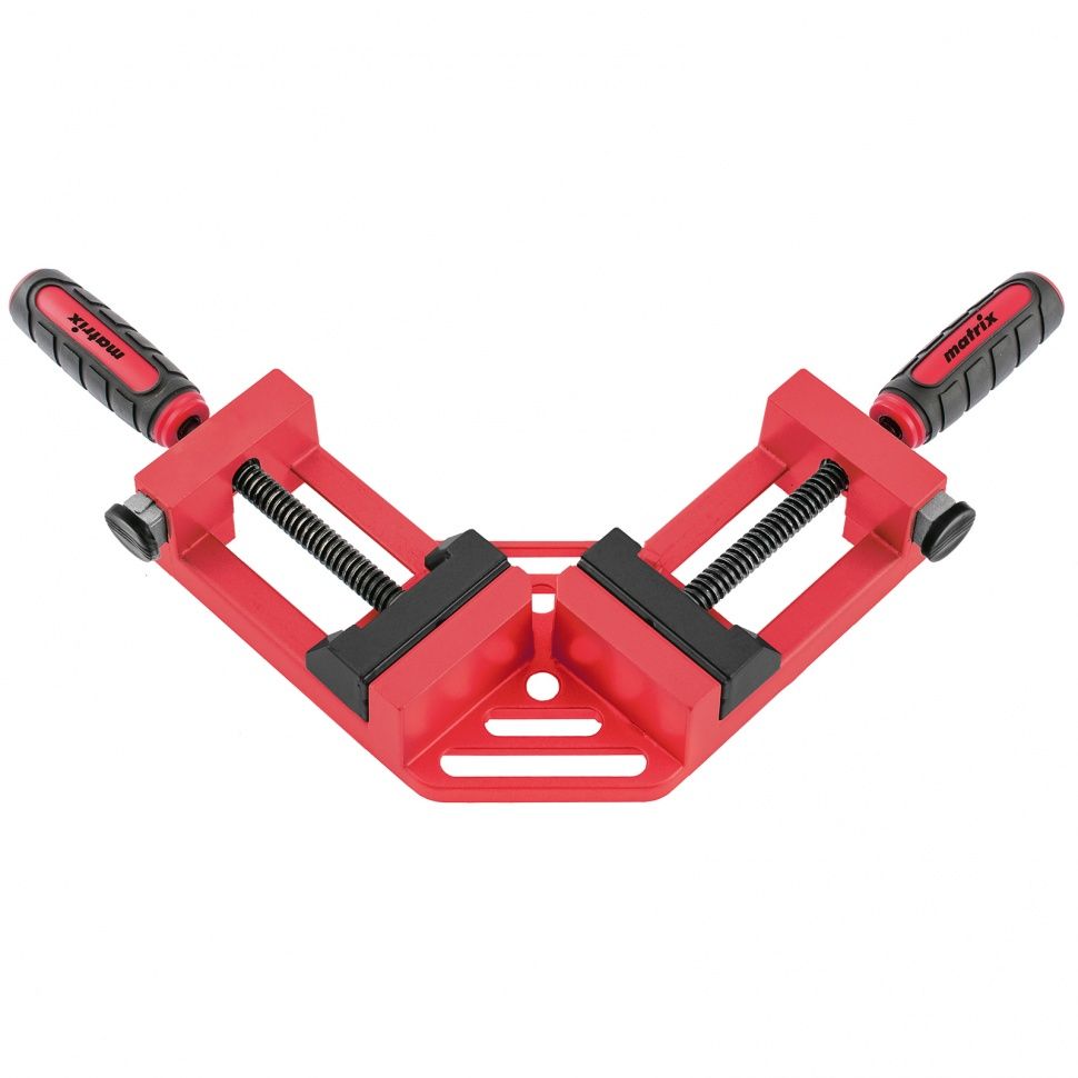 Угловая быстрозажимная струбцина Matrix 20322 с шириной зажима 65 х 65 мм, с двухкомпонентными обрезиненными рукоятками, предназначена для быстрой и надежной фиксации заготовок перпендикулярно друг другу. Рычажно-осевой механизм не требует особых усилий от пользователя. Инструмент позволяет точно выдерживать угол в 90°, обеспечивая высокое качество работ. Струбцину используют для сборки мебели и других конструкций. ПреимуществаНадежность — рама изготовлена из прочного алюминиевого сплава. Возможность крепления на верстаке — в корпусе имеются специальные отверстия и пазы. Комфортная работа — двухкомпонентные рукоятки с прорезиненной рельефной поверхностью не выскальзывают из рук.