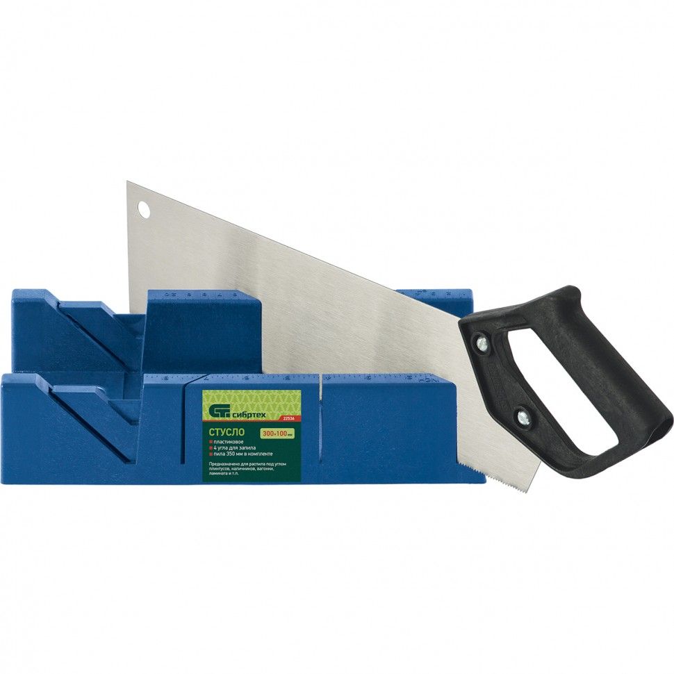 Стусло пластиковое синее,4 угла для запила+пила 350мм//СИБРТЕХ
