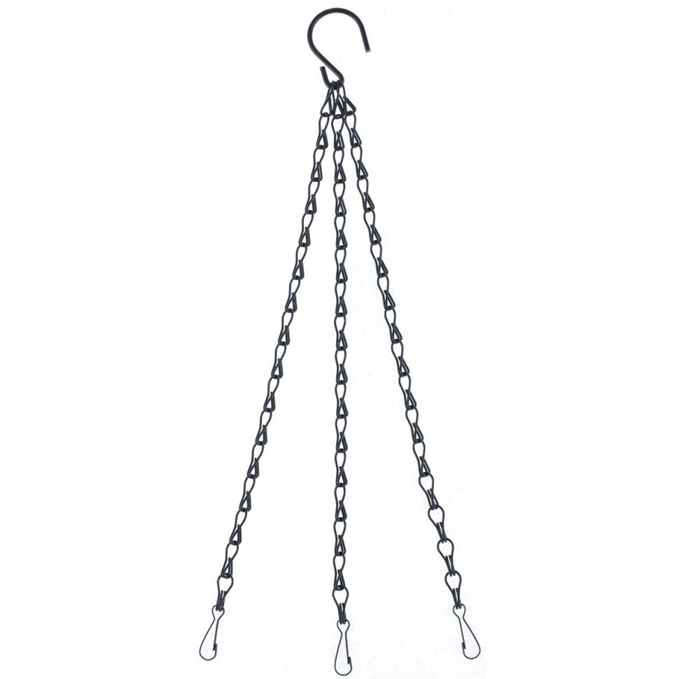 Цепочка для подвесного кашпо Palisad 69050 длиной 25 см пригодится владельцам садовых и комнатных растений. С ней экономится пространство, т. к. цветы не стоят на полках, а висят на стенах или под потолком. Изделие легко устанавливается и снимается, поэтому можно менять местоположение цветов в зависимости от погодных условий. ПреимуществаСтальная конструкция гарантирует надежность и прочность цепочки для кашпо. Порошковое покрытие предохраняет изделие от коррозии. 3 длинные цепочки с крючками закрытого типа обеспечивают надежную фиксацию кашпо. Три цепочки с крючками позволяют равномерно распределить вес кашпо.