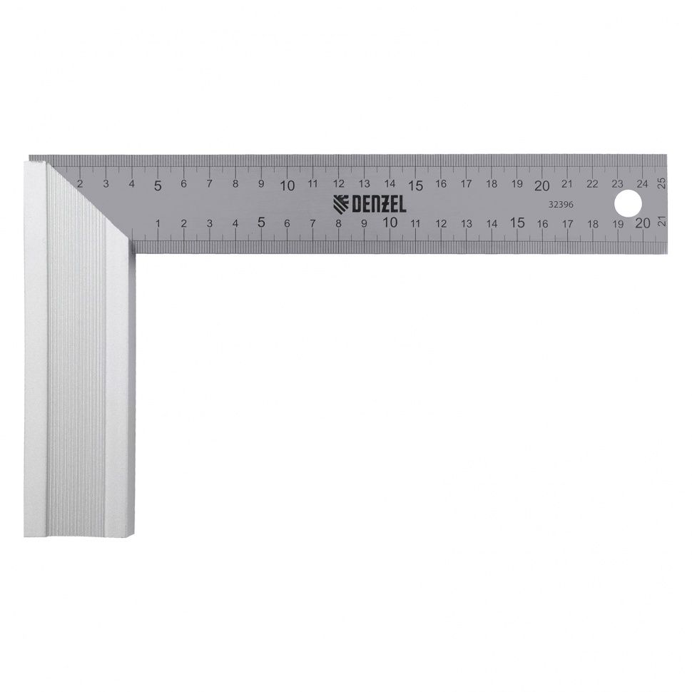 Стальной угольник Denzel 32396 длиной 250 мм, с градуировкой, алюминиевым основанием и полотном из нержавеющей стали, используется для построения и контроля углов. Будет полезен для выполнения столярных и строительных работ. ПреимуществаПрочность и долговечность — основание изготовлено из анодированного алюминия, рабочее полотно — из нержавеющей стали. Надежная конструкция — линейка соединена с основанием при помощи заклепок. Удобный хват — благодаря ребристой поверхности основание не выскальзывает из ладони. Комфортная эксплуатация — двухсторонняя измерительная шкала облегчает работу. Удобное хранение — благодаря специальному отверстию инструмент можно подвешивать на крючок или гвоздь.