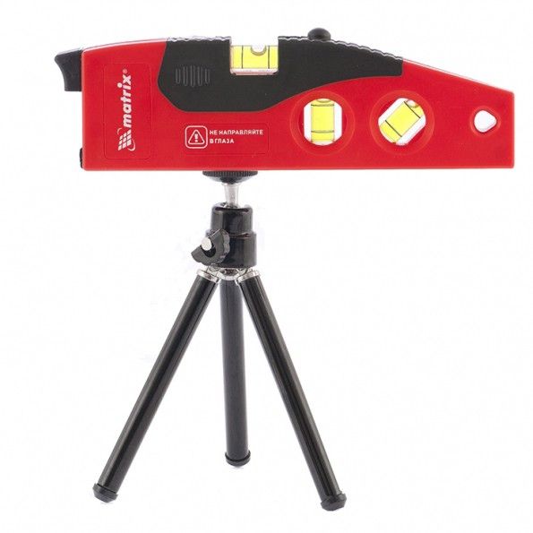 Лазерный уровень Matrix 35022 длиной 180 мм, с 4 глазками и штативом 220 мм, используется для построения разметки во время ремонта и строительства. Позволяет с высокой точностью выполнить установку подвесной мебели, монтаж розеток, выключателей и электроприборов, укладку облицовочной плитки на пол и стены. Дальность проецирования составляет 10 м. Красный цвет луча виден при любом освещении, поэтому уровень подходит для использования как в помещениях, так и на открытом воздухе. ПреимуществаУдобное использование — штатив высотой 22 см, с диаметром ножек 9 мм, обеспечивает устойчивость инструмента и позволяет работать в одиночку. Точное позиционирование — в корпус встроены 4 глазка: вертикальный, горизонтальный, круговой и наклонный (45°). Фиксация на металлических поверхностях — производитель предусмотрел магнитное крепление. Готовность к эксплуатации — в комплект поставки входит 2 батарейки типа ААА, поэтому приступать к работе можно сразу после покупки. Удобное хранение и транспортировка — уровень весит 213 г, его габариты составляют 24 х 12,7 х 3 см.