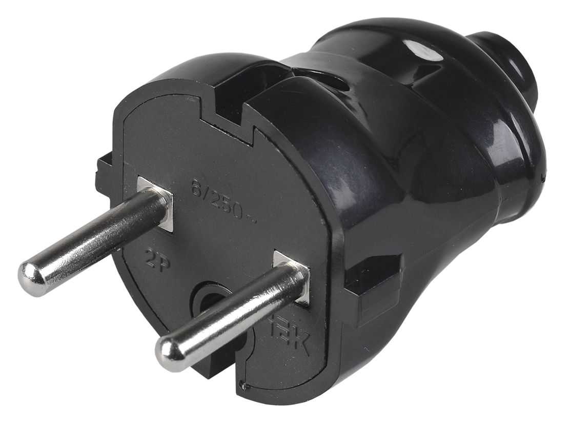 Вилка разборная прямая без з/к 6А черная ИЭК