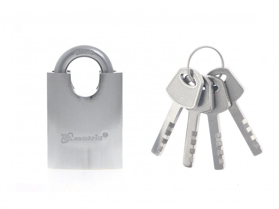 Навесной замок Matrix 91804 шириной 50 мм, с защищенной дужкой, используется для запирания дверей, ящиков и т. д. Препятствует несанкционированному проникновению в помещение и краже собственности. Замок вешается на проушины, поэтому для монтажа не требуются специальные инструменты. Дужка утоплена в корпус, благодаря чему запирающее устройство сложно взломать. ПреимуществаВзломостойкость — секретный механизм, корпус и дужка выполнены из прочной стали. Возможность уличного использования — корпус и дужка хромированы для защиты от коррозии. Удобная комплектация — к изделию прилагается 4 ключа, которые можно оставить про запас или использовать для предоставления доступа нескольким людям.