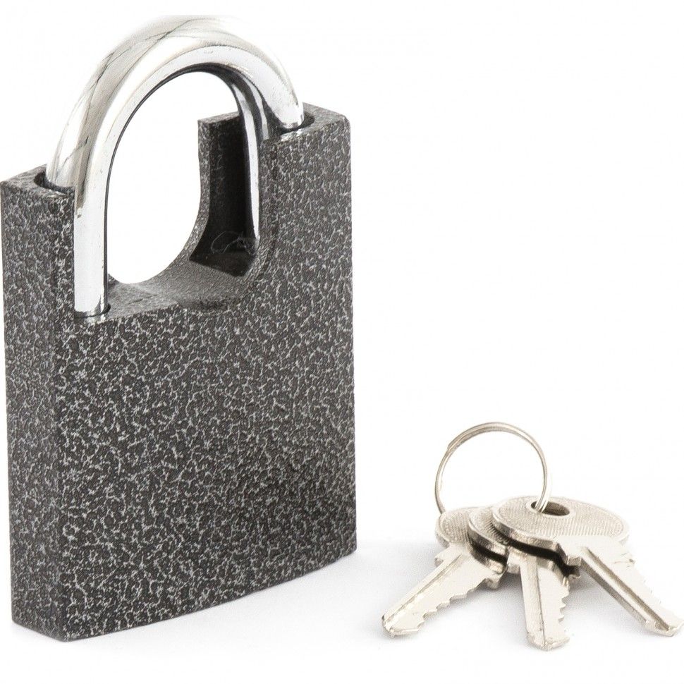 Навесной замок Сибртех 91638 шириной 60 мм, с защищенной дужкой, вешают на дверные проушины для защиты имущества от хищения. Дужка утоплена в корпус, что обеспечивает надежную защиту от взлома. Замок подойдет для установки на дверь склада, сарая, гаража или бытовки. ПреимуществаУстойчивость к повреждениям и климатическим воздействиям — корпус выполнен из углеродистой стали и покрыт молотковой эмалью, стальная дужка хромирована. Надежная защита от взлома — дужку сложно сломать, секретный механизм из латуни рассчитан на долгий срок службы. 3 ключа в комплекте — замком могут пользоваться несколько человек.