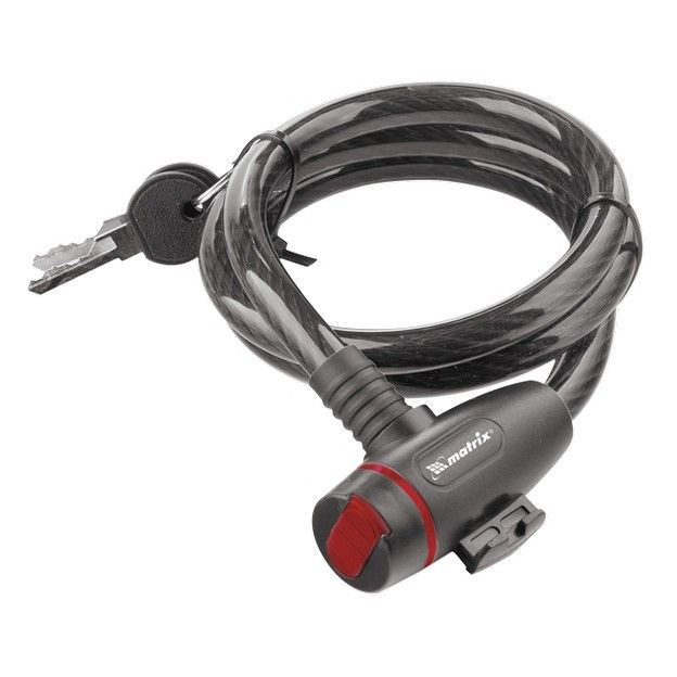 Универсальный тросовый замок Matrix 91817 размером 12 х 1200 мм используется для защиты личных вещей от кражи. С его помощью можно пристегнуть коляску, велосипед, санки, мопед и т. д, а также воспрепятствовать доступу в подсобное или хозяйственное помещение. Трос легко сворачивается и помещается в сумку, поэтому замок удобно брать с собой. ПреимуществаМаксимально удобное использование — замок быстро защелкивается без ключа, а благодаря гибкому тросу легко устанавливается даже в холодную погоду и в труднодоступных местах. Надежность — стальной трос диаметром 12 мм сложно перекусить кусачками. Долговечность — пластиковая оболочка защищает трос от воздействия влаги и ультрафиолета, латунный секретный механизм («личинка») устойчив к повреждениям и коррозии. Удобное хранение — на замке предусмотрен держатель для крепления к подседельному штырю. Продуманная комплектация — замок поставляется с 2 стальными ключами.